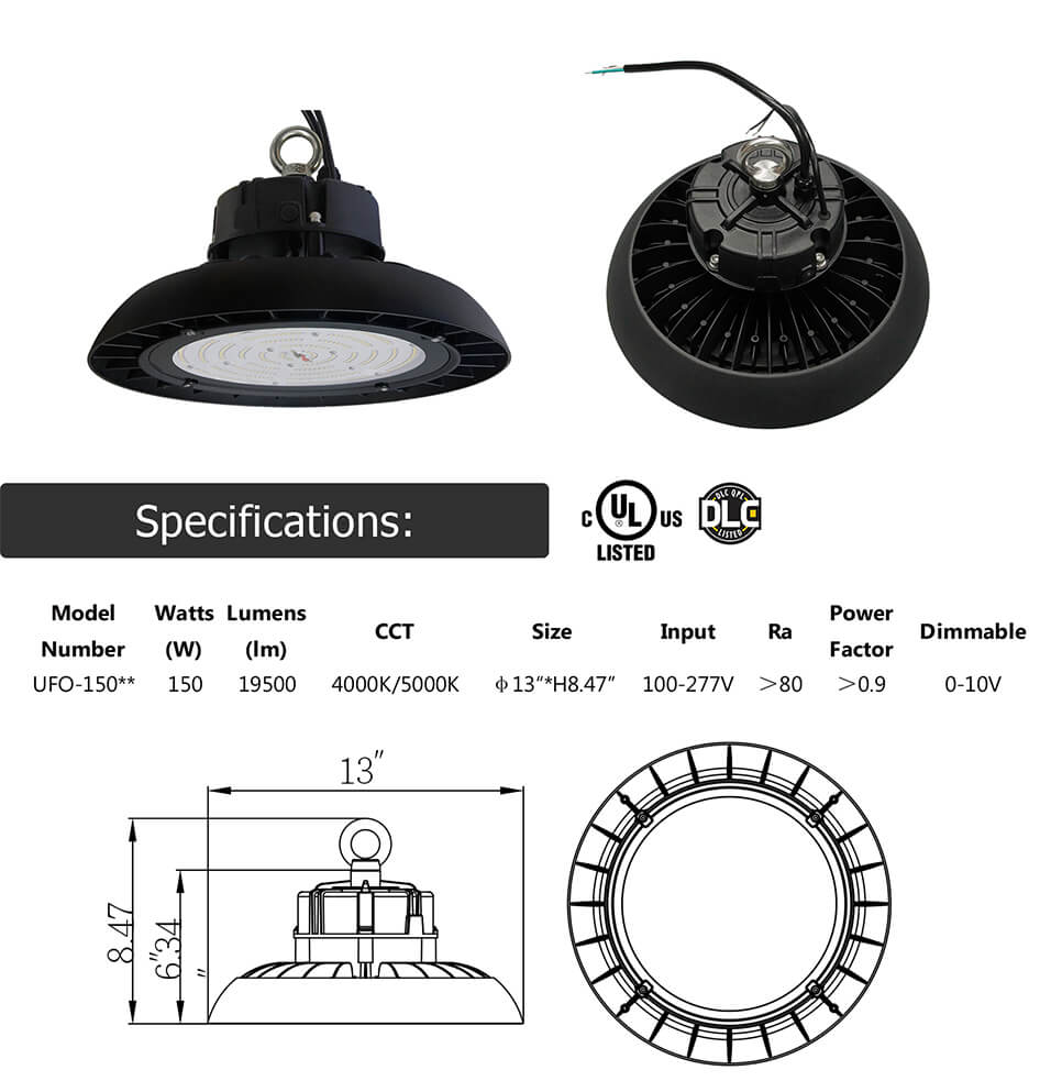 Harolux LED UFO High Bay series have fins design, advective holes and grooves in each fin, which is good for heat dissipation. With professional light distribution technique, they provide high light reflectivity reflectors, and the lens pass rate is over 90%. Because of their pure alumium shell, they weight lighter and have smaller size, which can save about half shipping costs.They can be used in wet location.